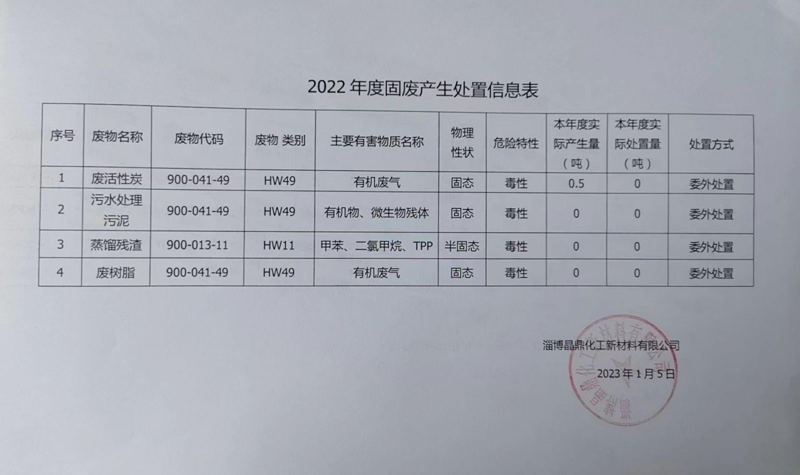 2022年度固廢產(chǎn)生處置信息表